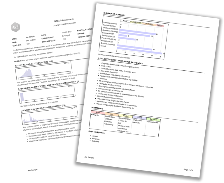 At the core of the application is ADE’s proprietary NEEDS Assessment v5, required for every participant in Georgia DUI programs. The assessment generates a client-centered individual feedback form that is embedded directly within the Prime For Life curriculum.